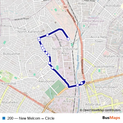 Click here to view the nearest 200 - New Melcom ↔ Circle bus stop.
