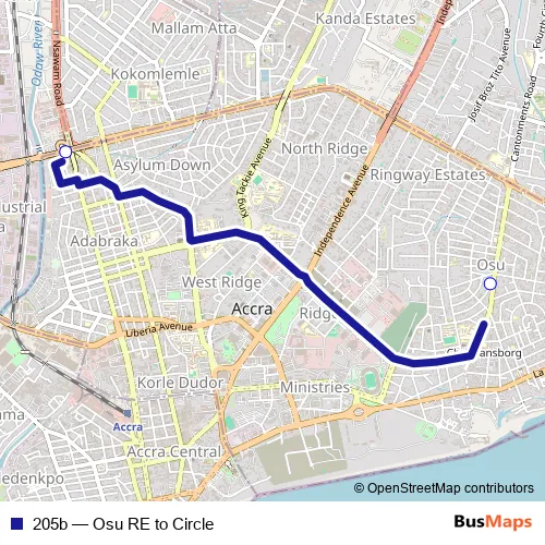 Bus 205b - Osu RE to Circle: Full Schedule in Accra