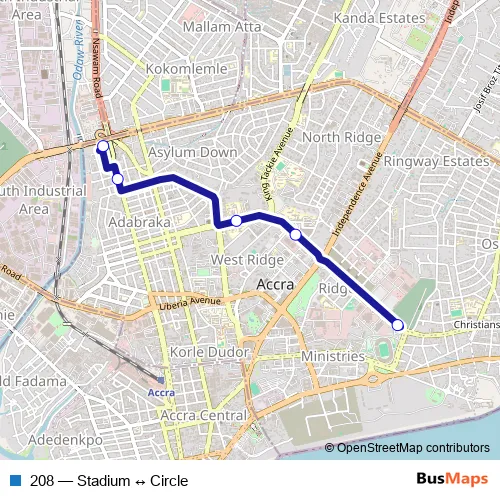 See why over 2 million users trust and consider busmaps.com as the best public transport website. busmaps gives you Accra Buses suggested routes, real-time bus tracker, line route maps in Accra, and helps to find the closest 208 bus stops near you. No internet available? Download an offline PDF map and bus schedule for the 208 bus to take on your trip.