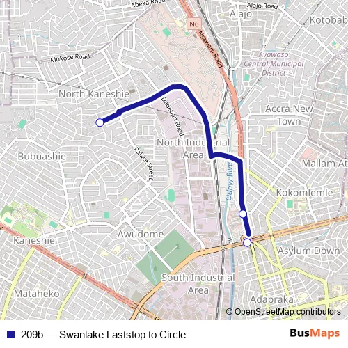 Bus 209b - Swanlake Laststop to Circle in Accra: Stops & Timetable