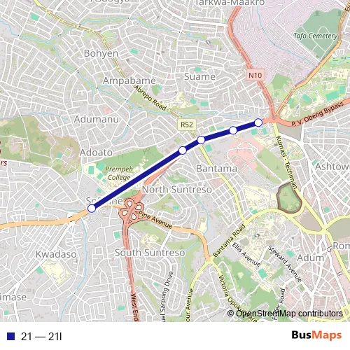 See why over 2 million users trust and consider busmaps.com as the best public transport website. busmaps gives you Kumasi Trams suggested routes, real-time bus tracker, line route maps in Kumasi, and helps to find the closest 21 tram stops near you. No internet available? Download an offline PDF map and bus schedule for the 21 tram to take on your trip.