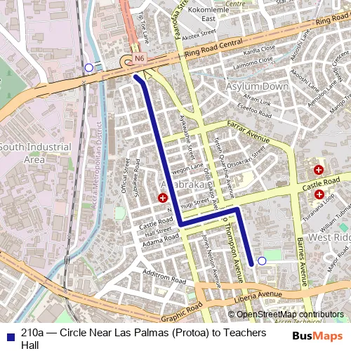 Bus 210a - Circle Near Las Palmas (Protoa) to Teachers Hall: Full Schedule in Accra