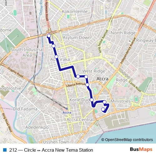 Click here to view the nearest 212 - Circle ↔ Accra New Tema Station bus stop.