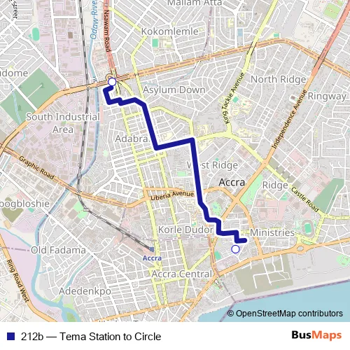 Click here to view the nearest 212b - Tema Station to Circle bus stop.