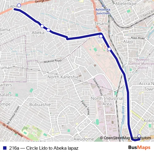 Bus 216a - Circle Lido to Abeka lapaz in Accra: Stops & Timetable