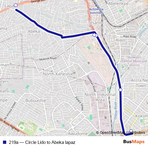 Bus 219a - Circle Lido to Abeka lapaz in Accra: Stops & Timetable