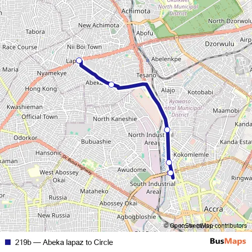 Click here to view the nearest 219b - Abeka lapaz to Circle bus stop.