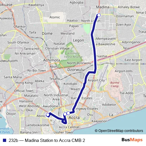 Bus 232b - Madina Station to Accra CMB 2: Full Schedule in Accra