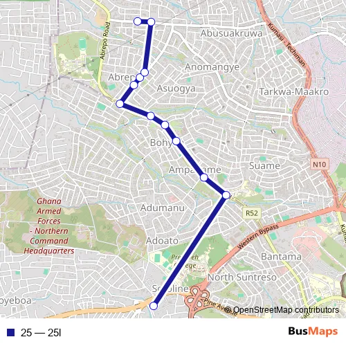 See why over 2 million users trust and consider busmaps.com as the best public transport website. busmaps gives you Kumasi Trams suggested routes, real-time bus tracker, line route maps in Kumasi, and helps to find the closest 25 tram stops near you. No internet available? Download an offline PDF map and bus schedule for the 25 tram to take on your trip.