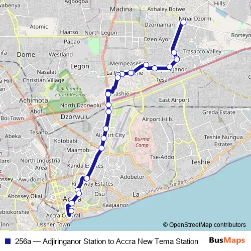 Bus 256a - Adjiringanor Station to Accra New Tema Station in Accra: Stops & Timetable