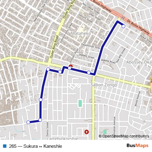 See why over 2 million users trust and consider busmaps.com as the best public transport website. busmaps gives you Accra Buses suggested routes, real-time bus tracker, line route maps in Accra, and helps to find the closest 265 bus stops near you. No internet available? Download an offline PDF map and bus schedule for the 265 bus to take on your trip.