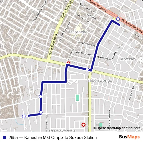 See why over 2 million users trust and consider busmaps.com as the best public transport website. busmaps gives you Accra Buses suggested routes, real-time bus tracker, line route maps in Accra, and helps to find the closest 265a bus stops near you. No internet available? Download an offline PDF map and bus schedule for the 265a bus to take on your trip.