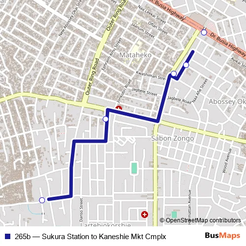 Click here to view the nearest 265b - Sukura Station to Kaneshie Mkt Cmplx bus stop.