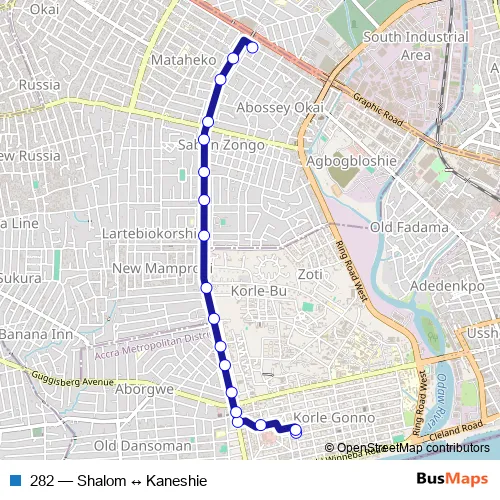 Bus 282 - Shalom ↔ Kaneshie: Full Schedule in Accra