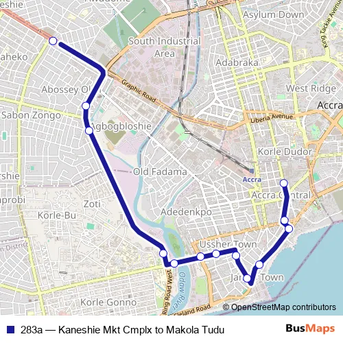 Bus 283a - Kaneshie Mkt Cmplx to Makola Tudu Schedule in Accra