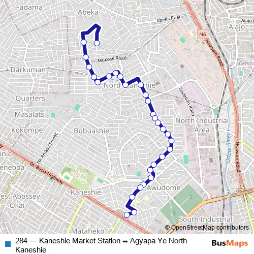 Click here to view the nearest 284 - Kaneshie Market Station ↔ Agyapa Ye North Kaneshie bus stop.