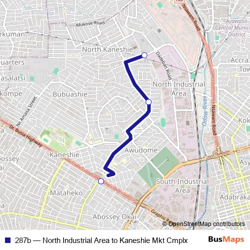 Click here to view the nearest 287b - North Industrial Area to Kaneshie Mkt Cmplx bus stop.