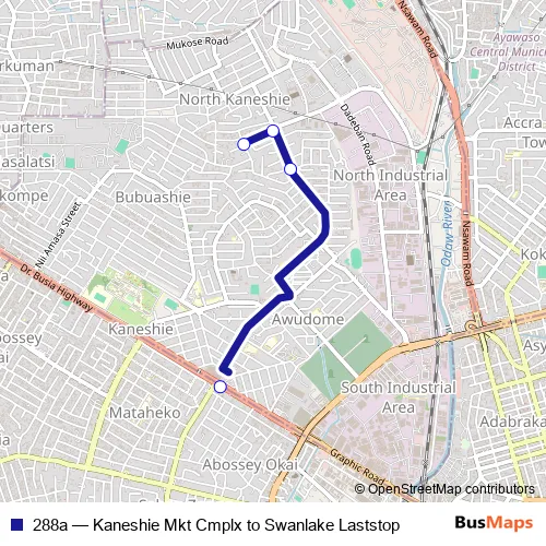 Click here to view the nearest 288a - Kaneshie Mkt Cmplx to Swanlake Laststop bus stop.