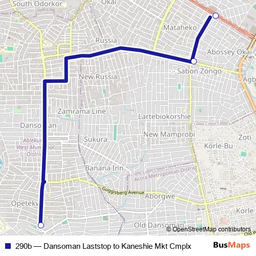Bus 290b - Dansoman Laststop to Kaneshie Mkt Cmplx in Accra: Stops & Timetable