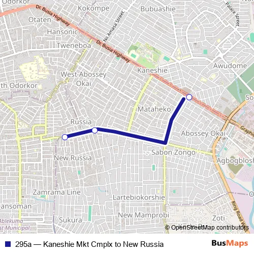 Bus 295a - Kaneshie Mkt Cmplx to New Russia in Accra: Stops & Timetable