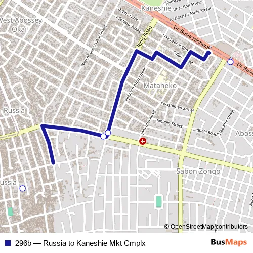 Click here to view the nearest 296b - Russia to Kaneshie Mkt Cmplx bus stop.