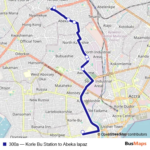 Click here to view the nearest 300a - Korle Bu Station to Abeka lapaz bus stop.