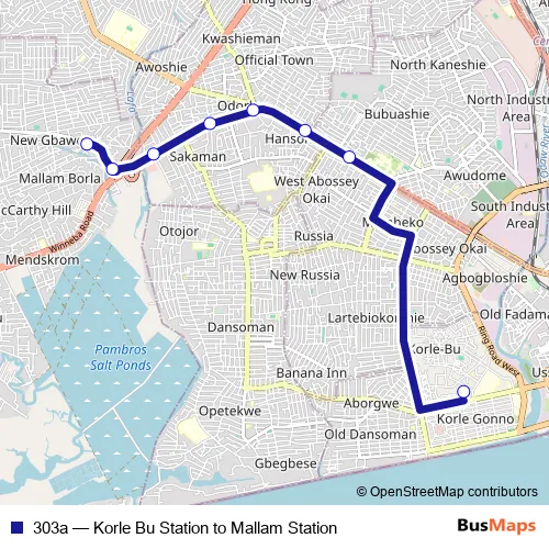 Bus 303a - Korle Bu Station to Mallam Station: Full Schedule in Accra