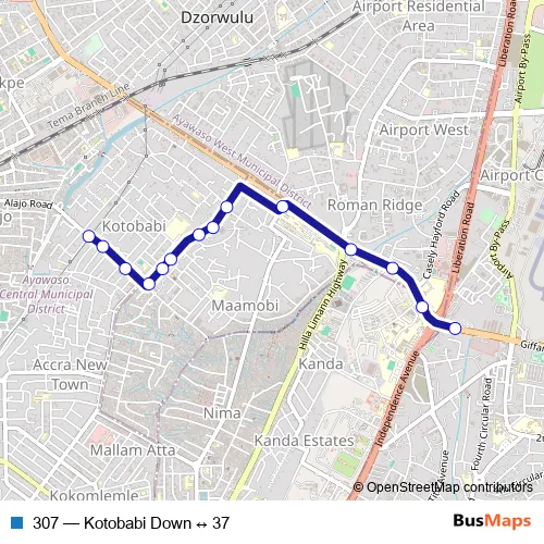 Bus 307 - Kotobabi Down ↔ 37 Schedule in Accra