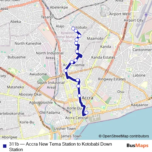 Click here to view the nearest 311b - Accra New Tema Station to Kotobabi Down Station bus stop.