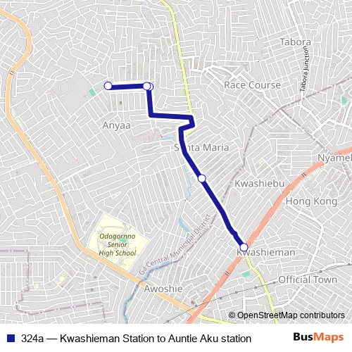 Bus 324a - Kwashieman Station to Auntie Aku station in Accra: Stops & Timetable