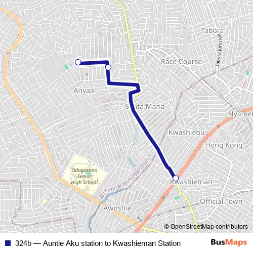 Bus 324b - Auntie Aku station to Kwashieman Station in Accra: Stops & Timetable