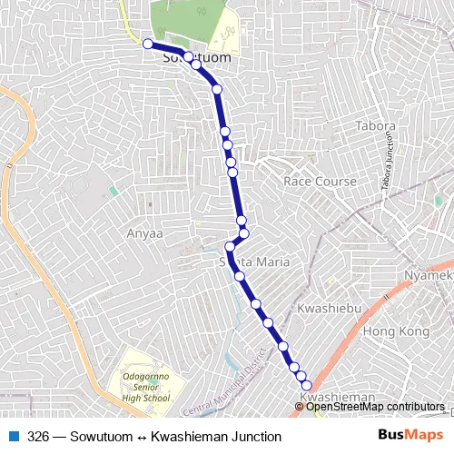 Bus 326 - Sowutuom ↔ Kwashieman Junction in Accra: Stops & Timetable
