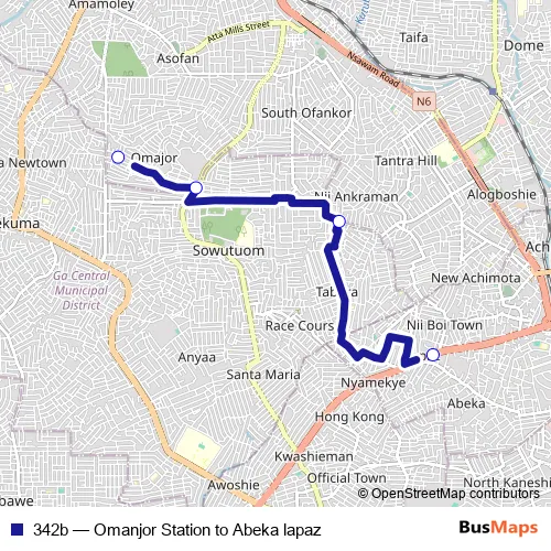 Click here to view the nearest 342b - Omanjor Station to Abeka lapaz bus stop.
