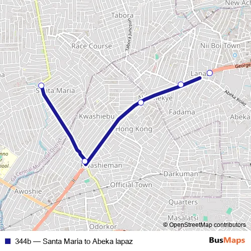 See why over 2 million users trust and consider busmaps.com as the best public transport website. busmaps gives you Accra Buses suggested routes, real-time bus tracker, line route maps in Accra, and helps to find the closest 344b bus stops near you. No internet available? Download an offline PDF map and bus schedule for the 344b bus to take on your trip.