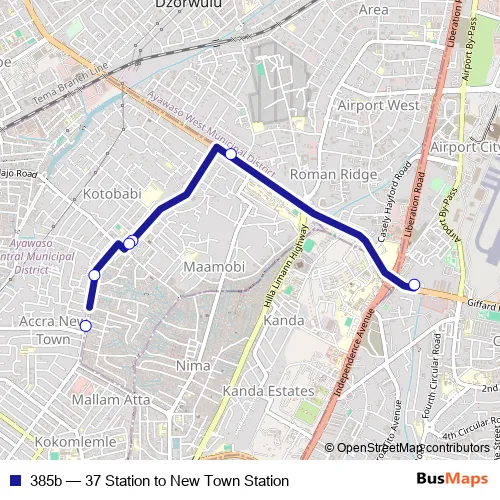 Bus 385b - 37 Station to New Town Station Schedule in Accra