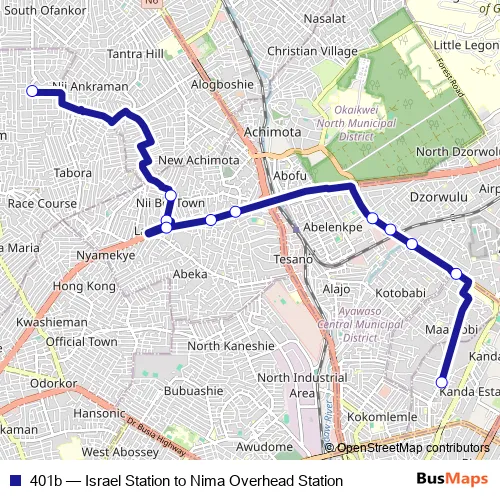 Bus 401b - Israel Station to Nima Overhead Station: Full Schedule in Accra