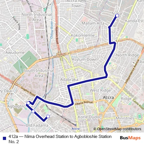 Bus 412a - Nima Overhead Station to Agbobloshie Station No. 2 in Accra: Stops & Timetable