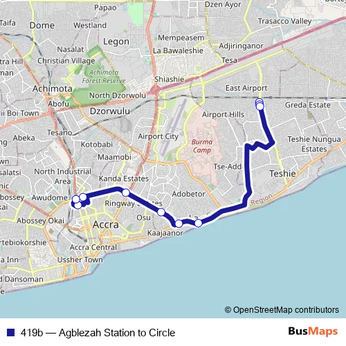 Click here to view the nearest 419b - Agblezah Station to Circle bus stop.