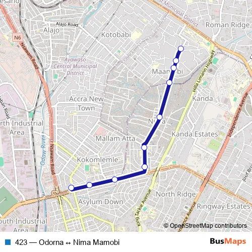 Bus 423 - Odorna ↔ Nima Mamobi: Full Schedule in Accra