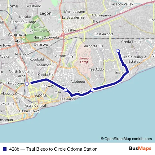 Bus 428b - Tsui Bleeo to Circle Odorna Station in Accra: Stops & Timetable