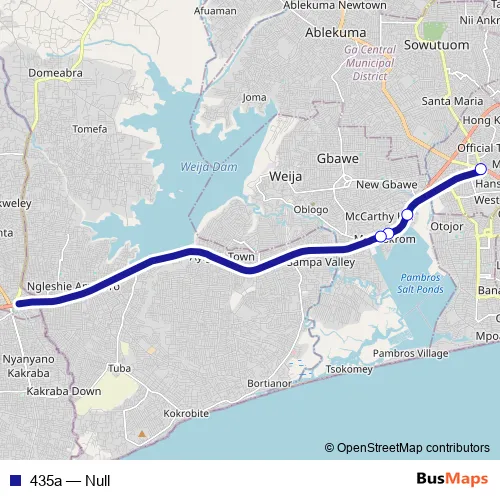 See why over 2 million users trust and consider busmaps.com as the best public transport website. busmaps gives you Accra Buses suggested routes, real-time bus tracker, line route maps in Accra, and helps to find the closest 435a bus stops near you. No internet available? Download an offline PDF map and bus schedule for the 435a bus to take on your trip.