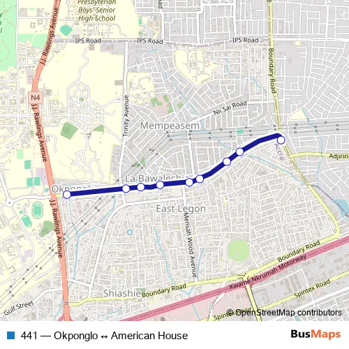 Click here to view the nearest 441 - Okponglo ↔ American House bus stop.