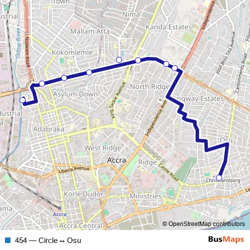 Bus 454 - Circle ↔ Osu: Full Schedule in Accra