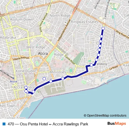 Click here to view the nearest 470 - Osu Penta Hotel ↔ Accra Rawlings Park bus stop.