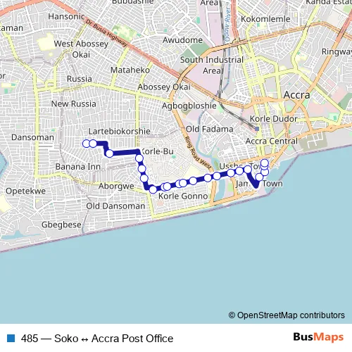 Bus 485 - Soko ↔ Accra Post Office: Full Schedule in Accra