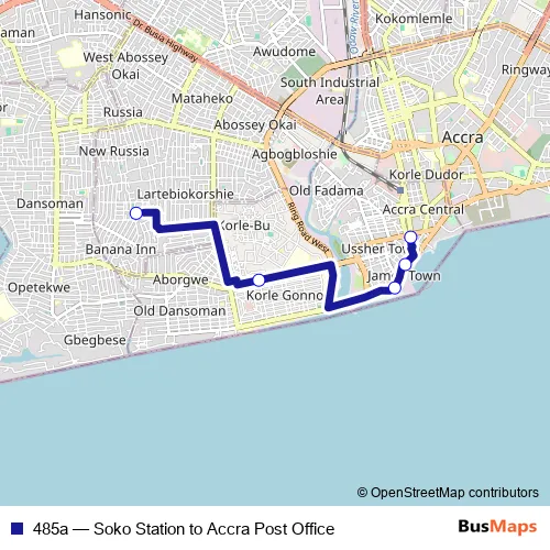 Bus 485a - Soko Station to Accra Post Office: Full Schedule in Accra