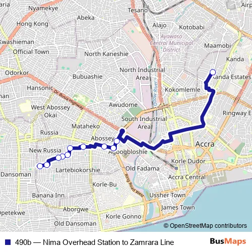 Bus 490b - Nima Overhead Station to Zamrara Line Schedule in Accra
