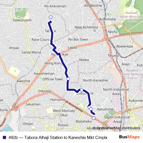 Click here to view the nearest 492b - Tabora Alhaji Station to Kaneshie Mkt Cmplx bus stop.