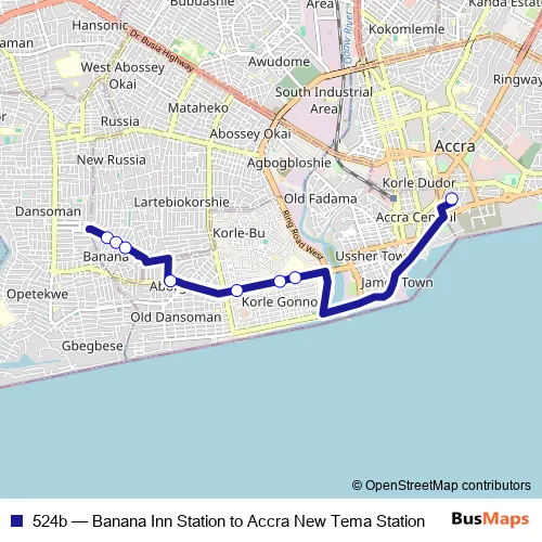Click here to view the nearest 524b - Banana Inn Station to Accra New Tema Station bus stop.