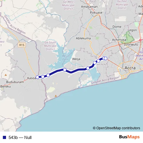 See why over 2 million users trust and consider busmaps.com as the best public transport website. busmaps gives you Accra Buses suggested routes, real-time bus tracker, line route maps in Accra, and helps to find the closest 543b bus stops near you. No internet available? Download an offline PDF map and bus schedule for the 543b bus to take on your trip.
